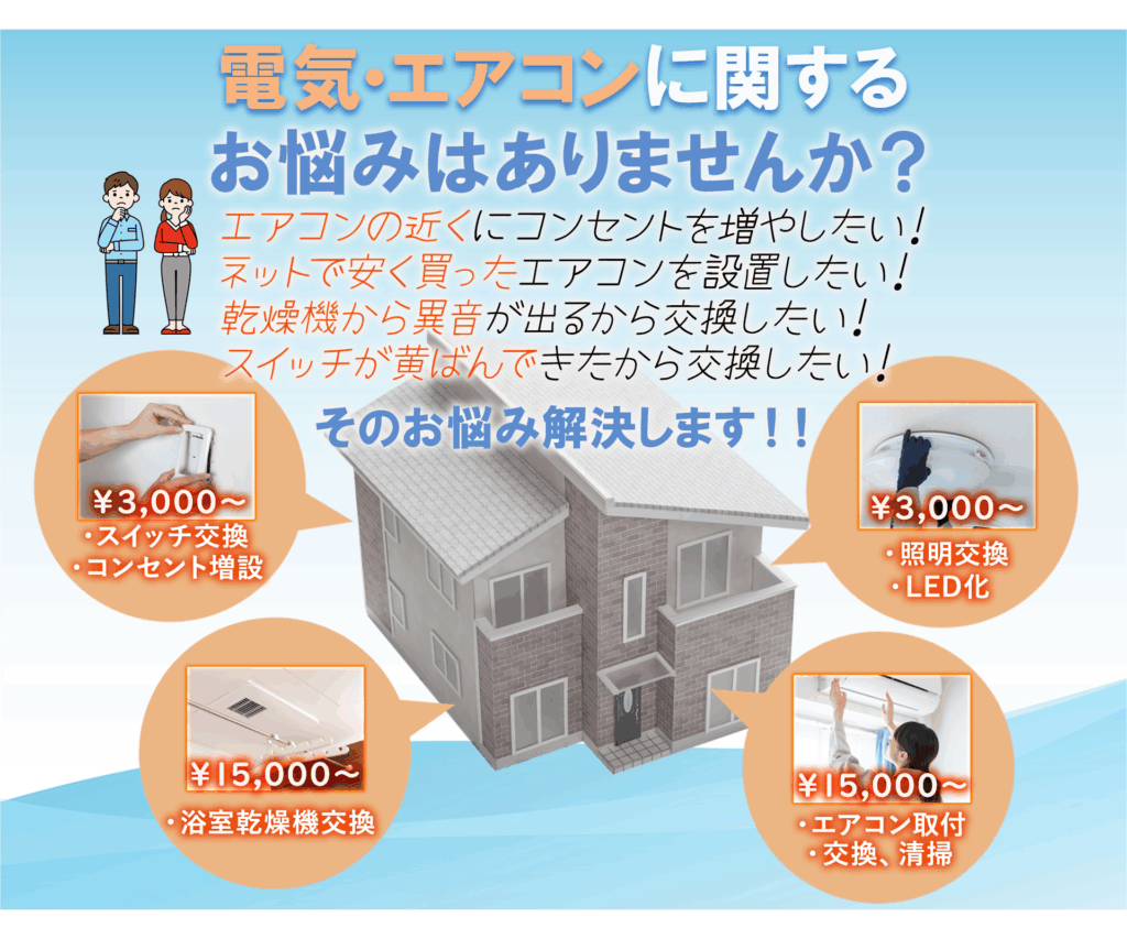電気工事・エアコン設置・発電機の点検・修理など、札幌市内で幅広く対応しています。